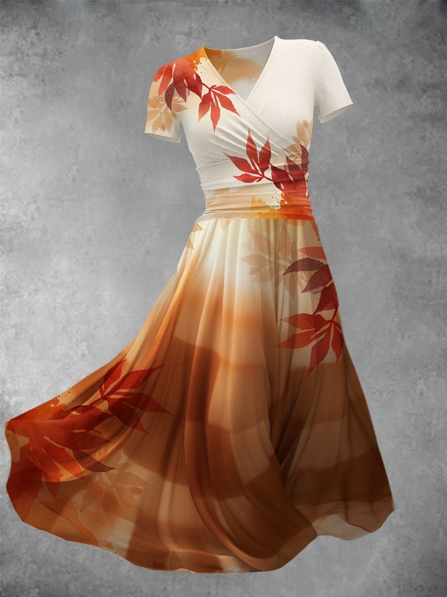 Women's Artistic Gradient Fall Maple Leaf Maxi Dress