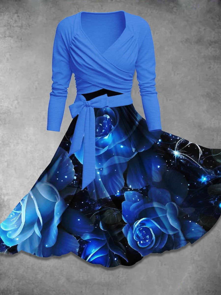 Women's Shiny Rose Christmas Gifts Print Two Piece Dress