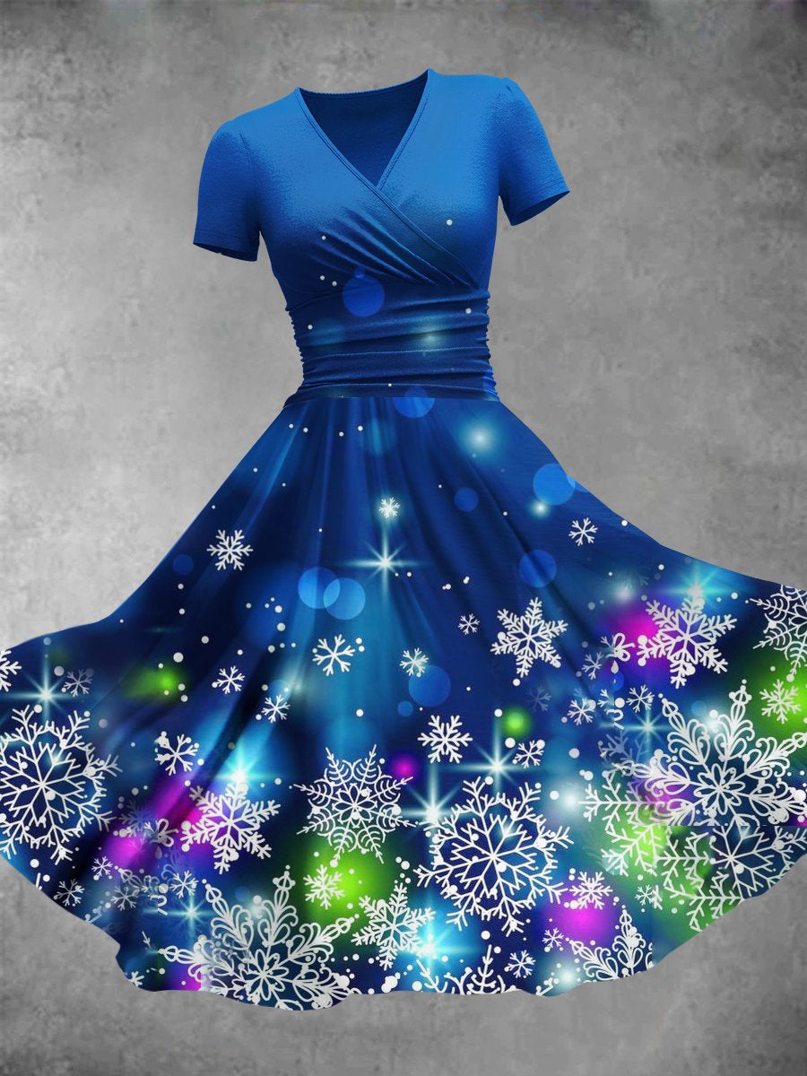 Women's Christmas Gift Christmas Shining Snowflake Neon Lights Print Design Maxi Dress