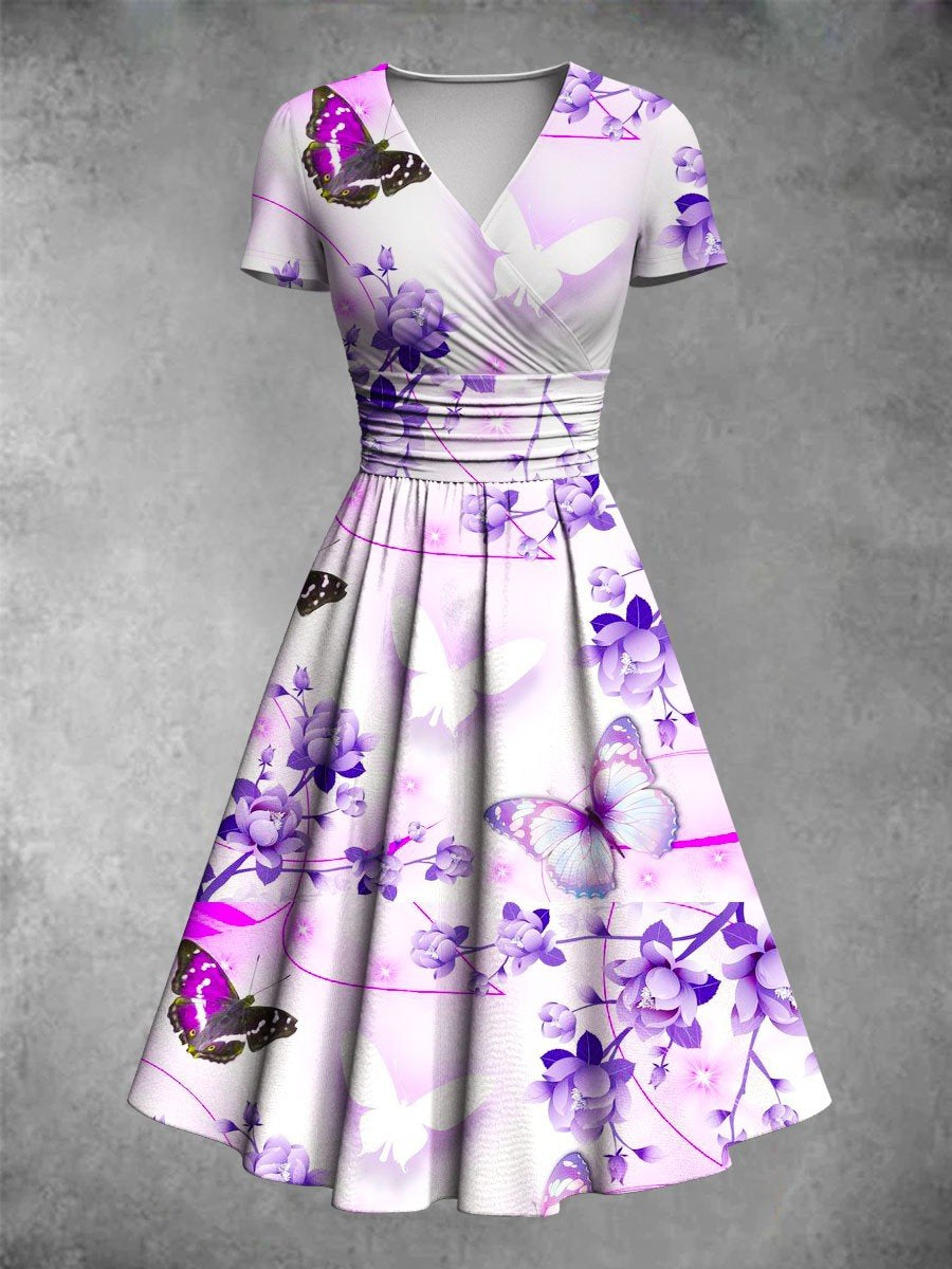 Women's Classic Casual Gradient Butterfly Pattern Midi Dress