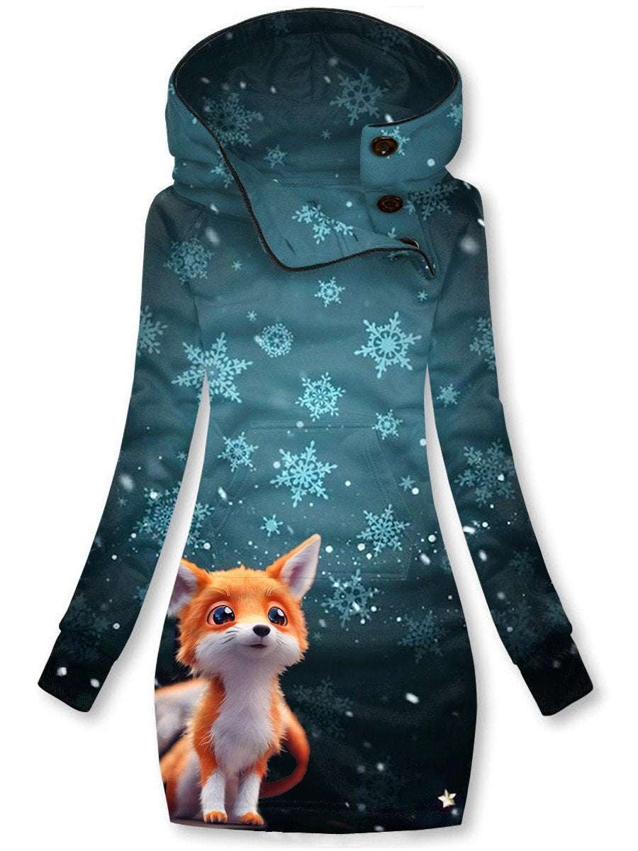 Women's Winter Fox Print Casual Sports Hooded Dress