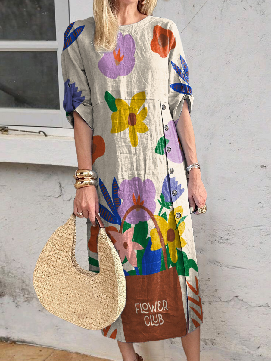 Gender: For Women Style: Casual Fit Type:FIt Shirt Length: Regular Sleeves Length: Long Sleeve Collar: Round Collar Material: 70%Cotton+30%Linen Material Stretch: No Stretch Pocket :Side poctket Weight: 0.300kg Package:1 x Dress