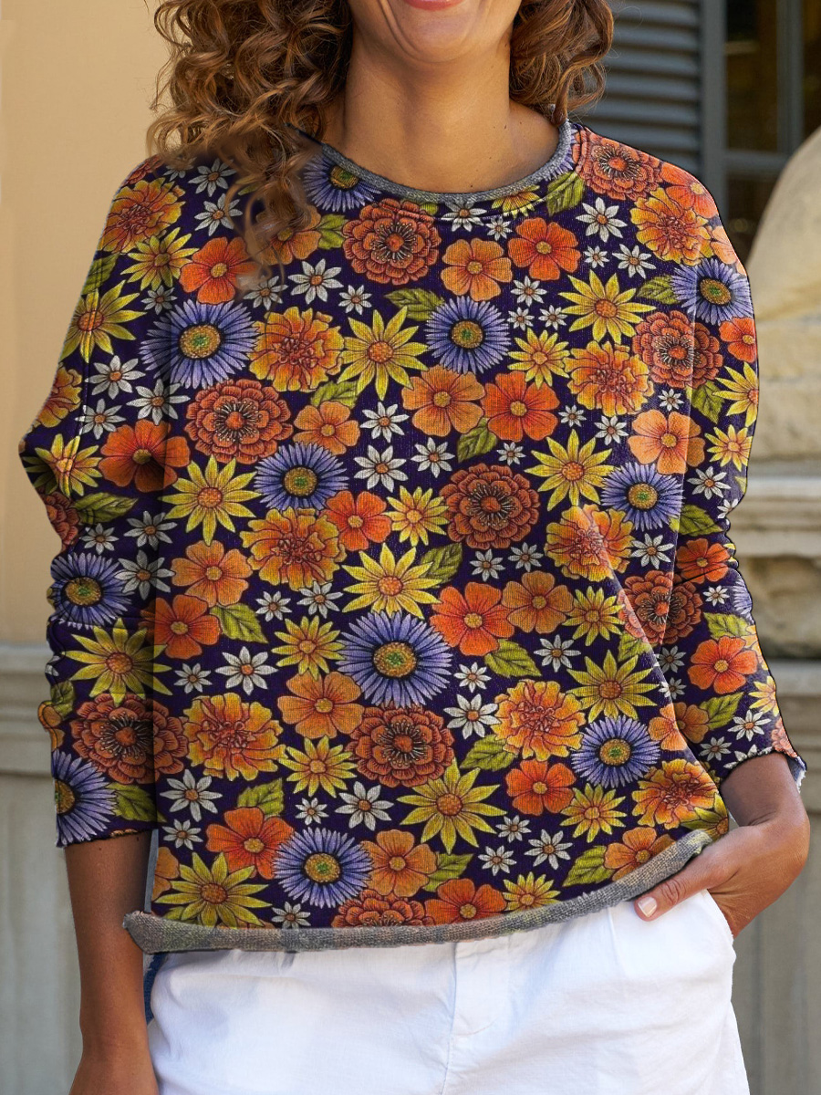 Vintage Floral Decorative Pattern Casual Sweatshirt