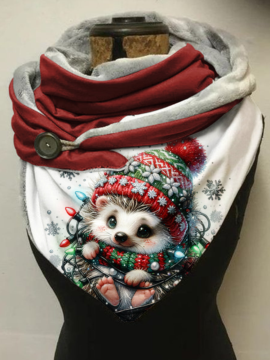 Christmas Hedgehog Animal Print Scarf And Shawl