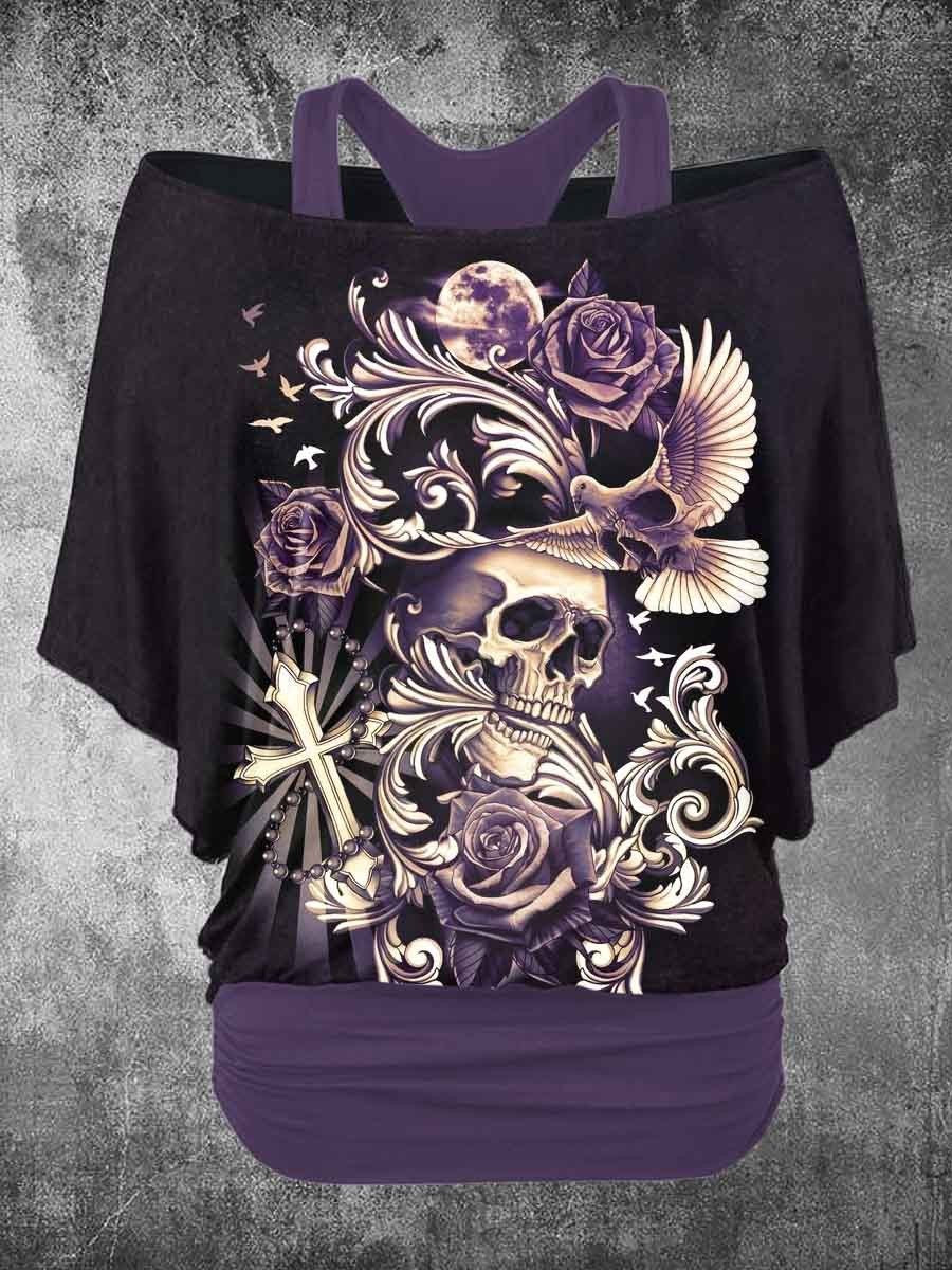 Women's Vintage Punk Skull Printed Two Piece Top