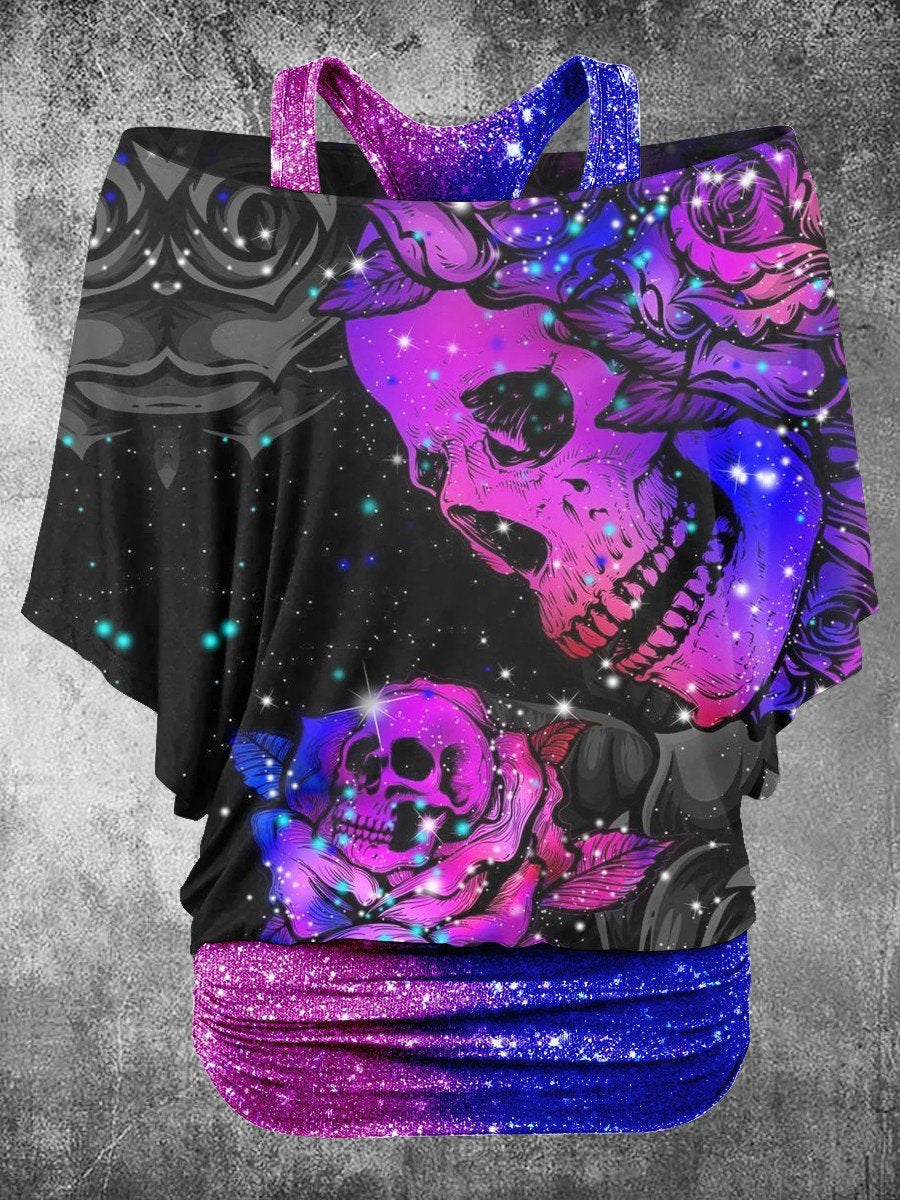 Women's Punk Skull Butterfly Gradient Art Two Piece Suit Top