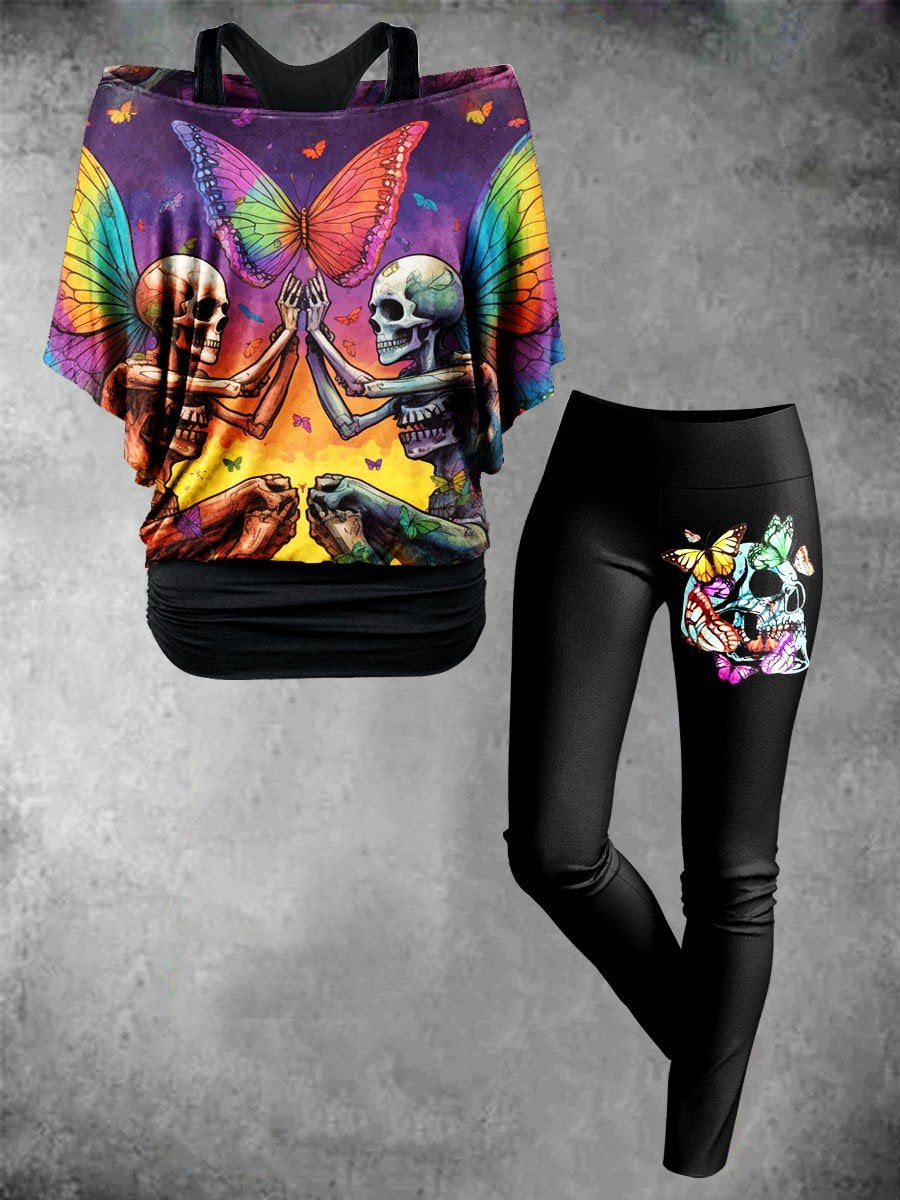 Women's Rainbow Skull Top Leggings Two-Piece Set