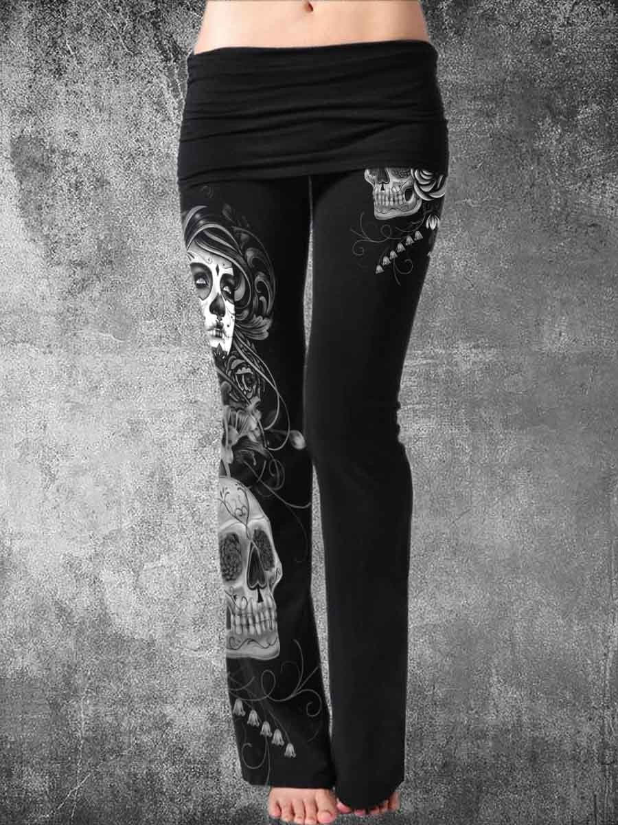 Women's Vintage Gothic Skull Art Printed Casual Pants