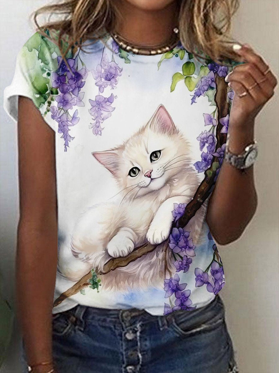 Wisteria Cat Art T-shirt