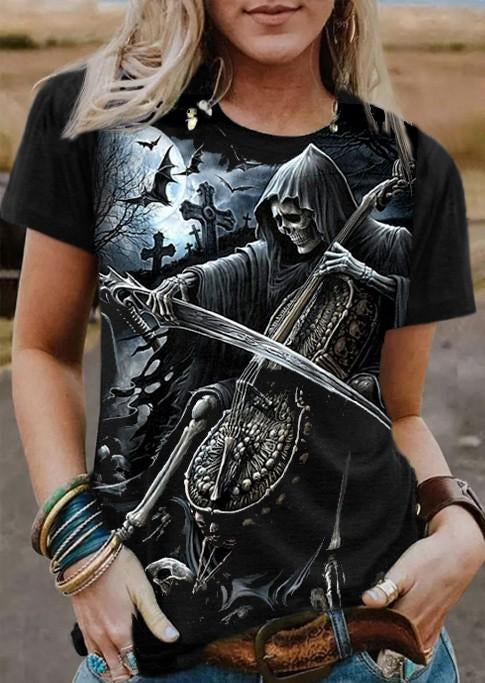 Women's Retro Punk Skull Print Casual T-Shirt