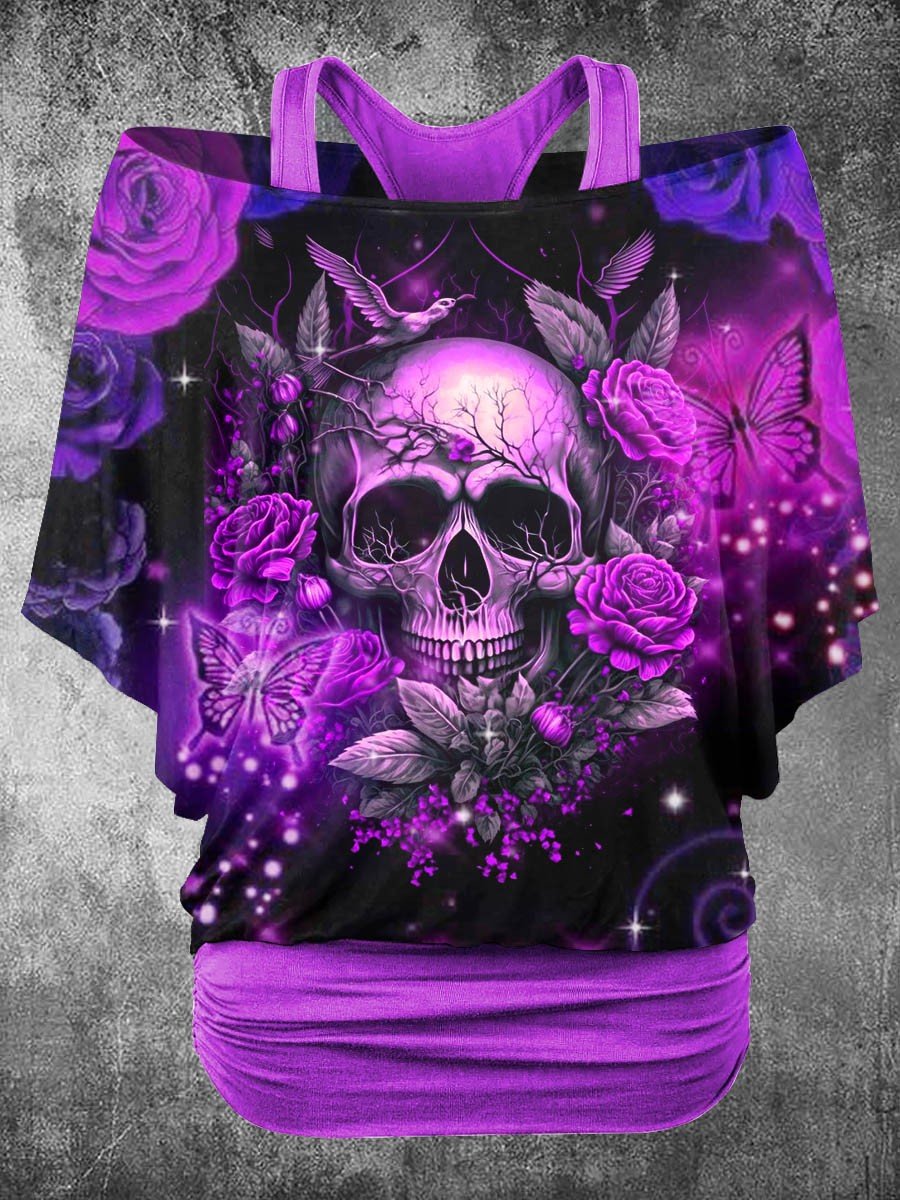 Women's Punk Skull Art Slouchy Print Two-piece Top