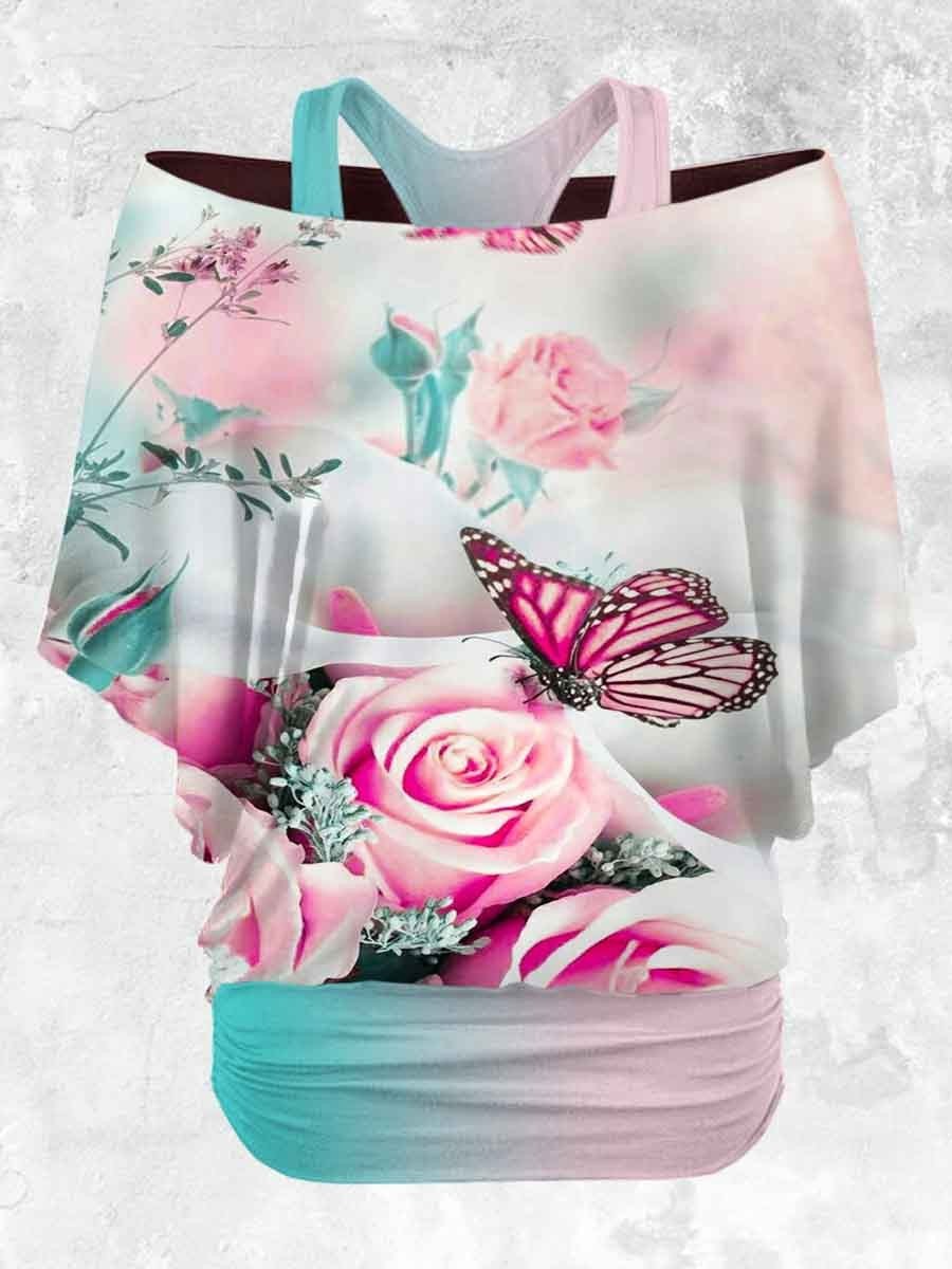 Women's Vintage Butterflies Art Printed Two Piece Top