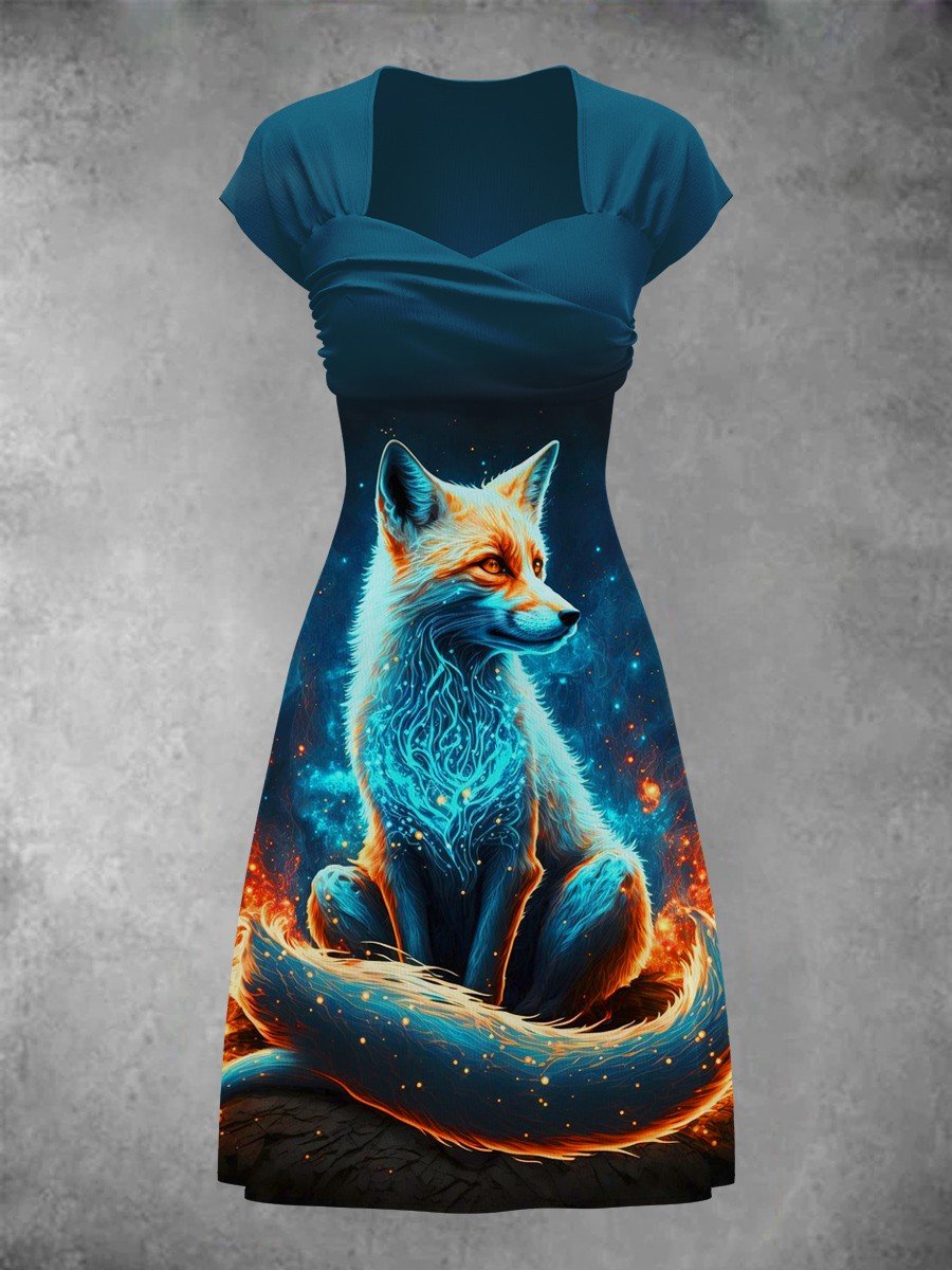 Women's Fox Vintage Print Casual Maxi Dress