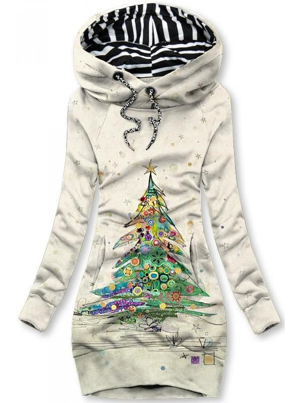 Women's Winter Christmas Tree Print Casual Hoodie