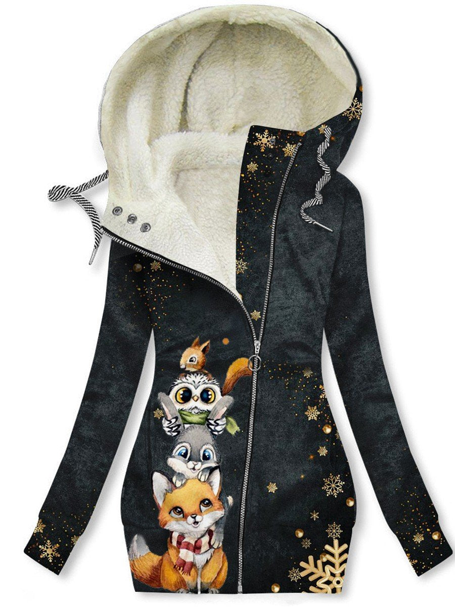 Women's Christmas Snowflake Fox Owl Rabbit Squirrel Art Fleece Casual Sweatshirt