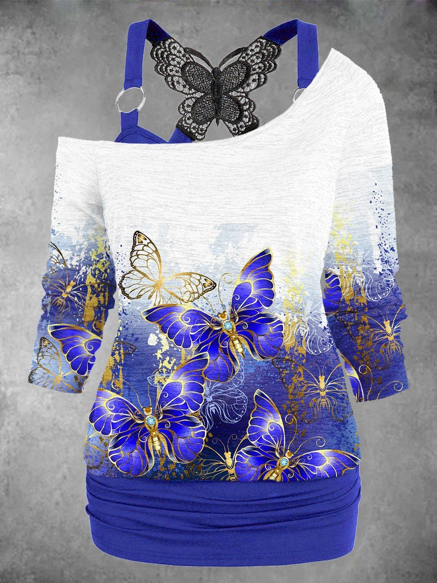 Women's Butterfly Flower Desig Two Piece Suit Top