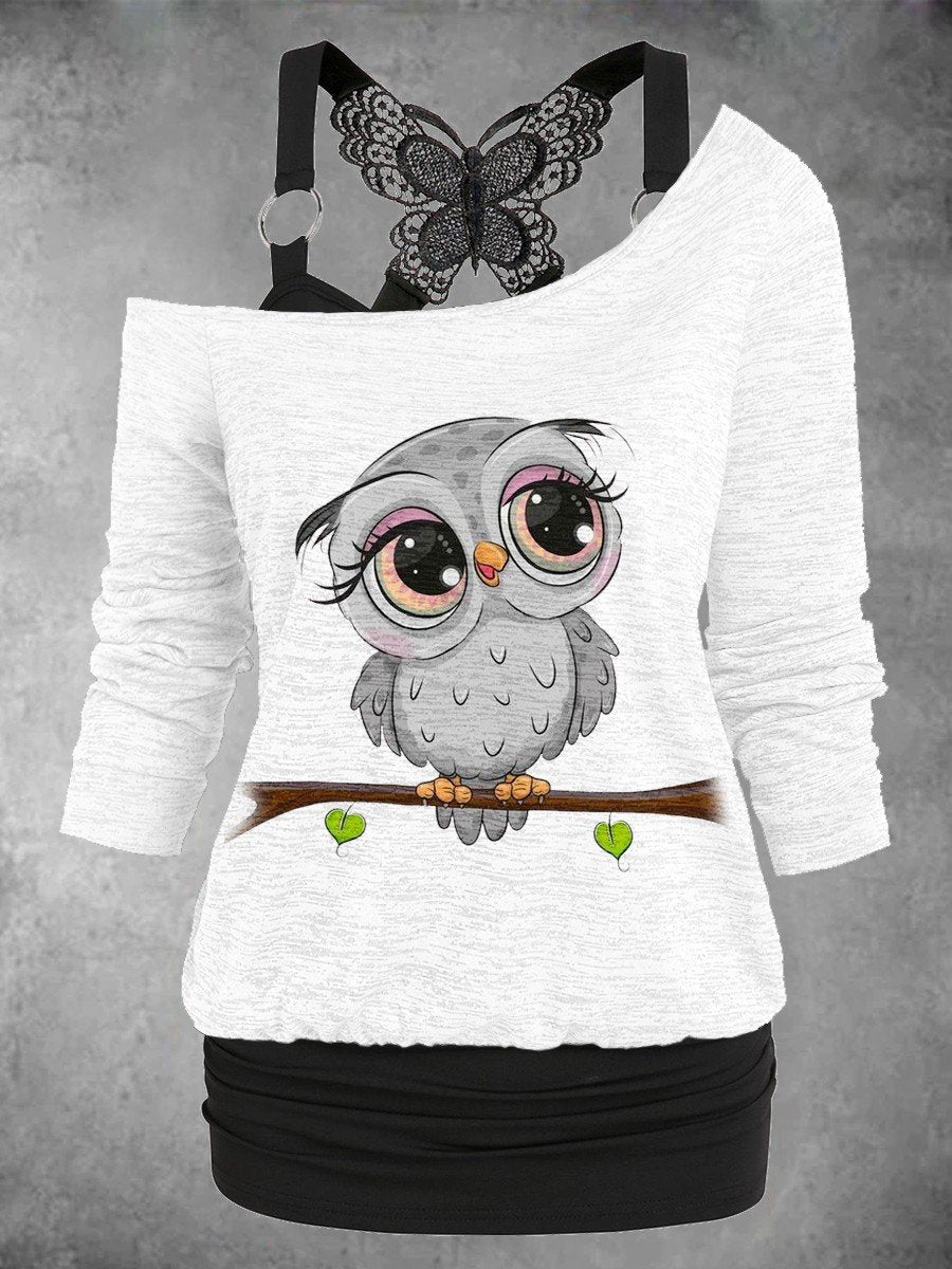 Women's Owl Art Desig Two Piece Suit Top
