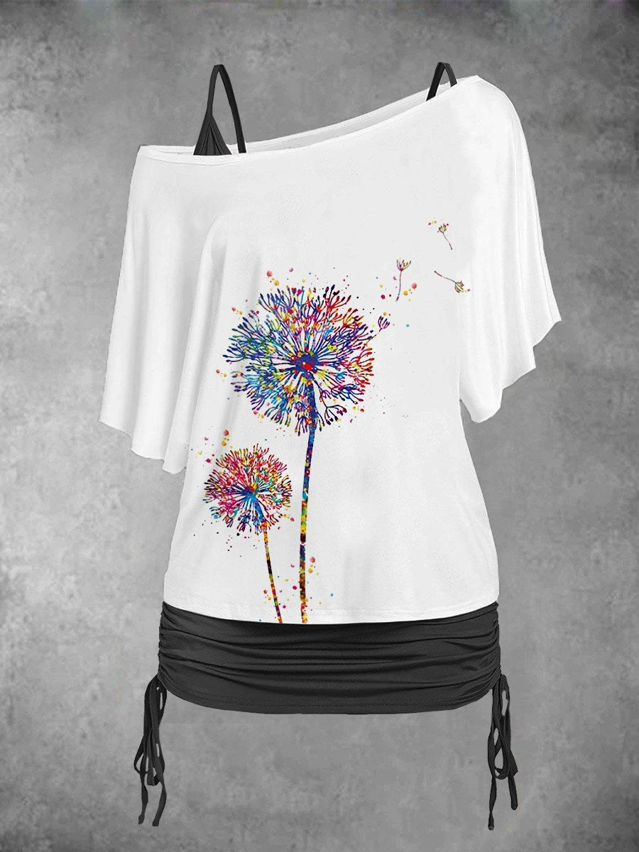 Women's Artistic Dandelion Print Casual Two-Piece Top