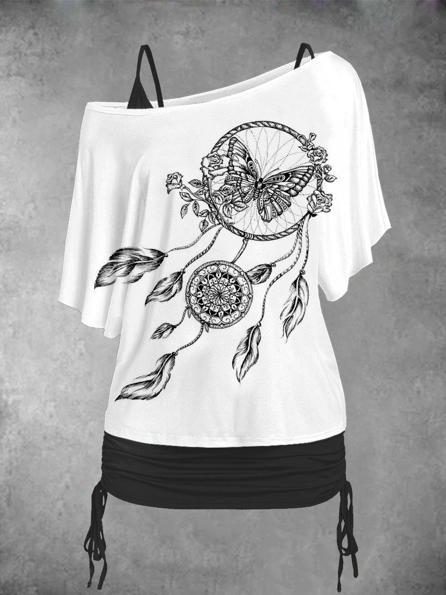 Women's Artistic Design Dream Catcher Flower Two Piece Suit Top