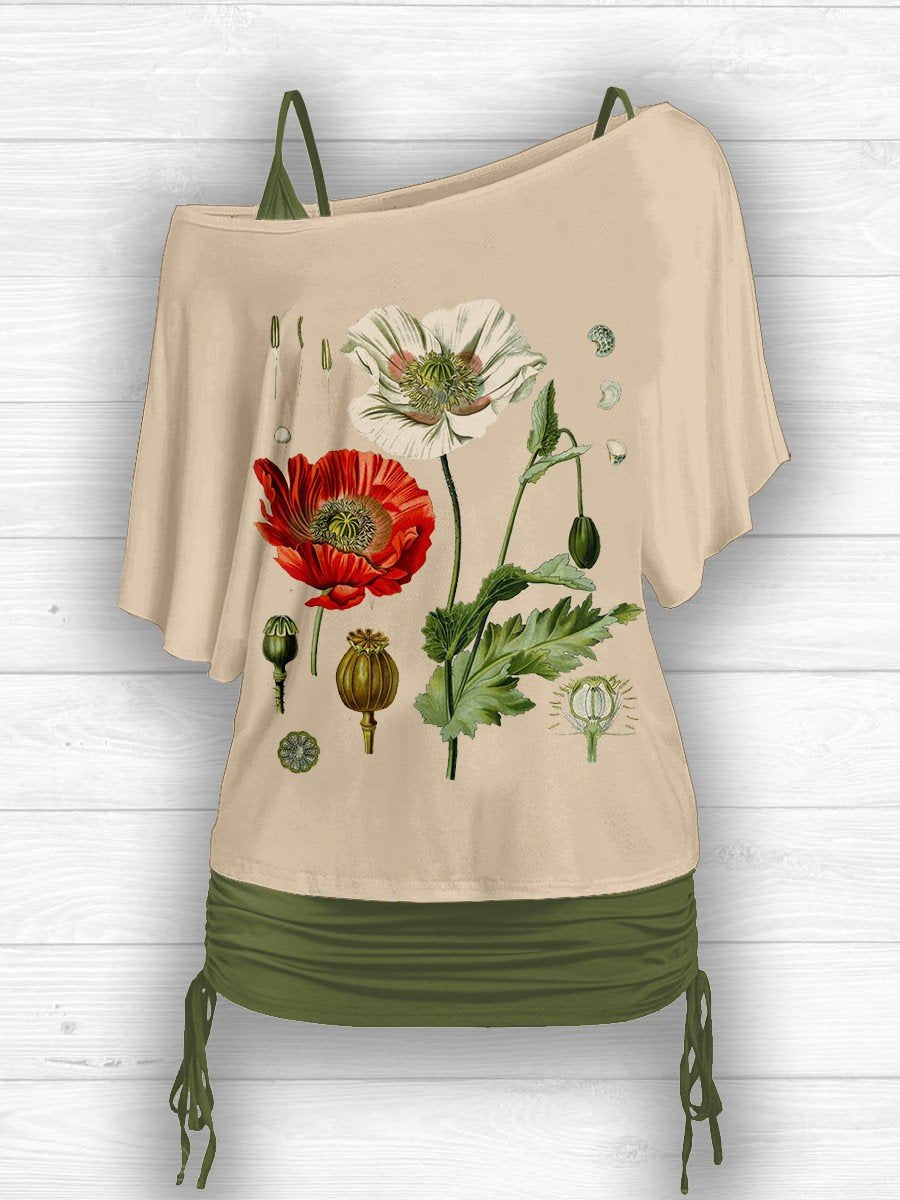Women's Vintage Poppy Art Design Two Piece Suit Top