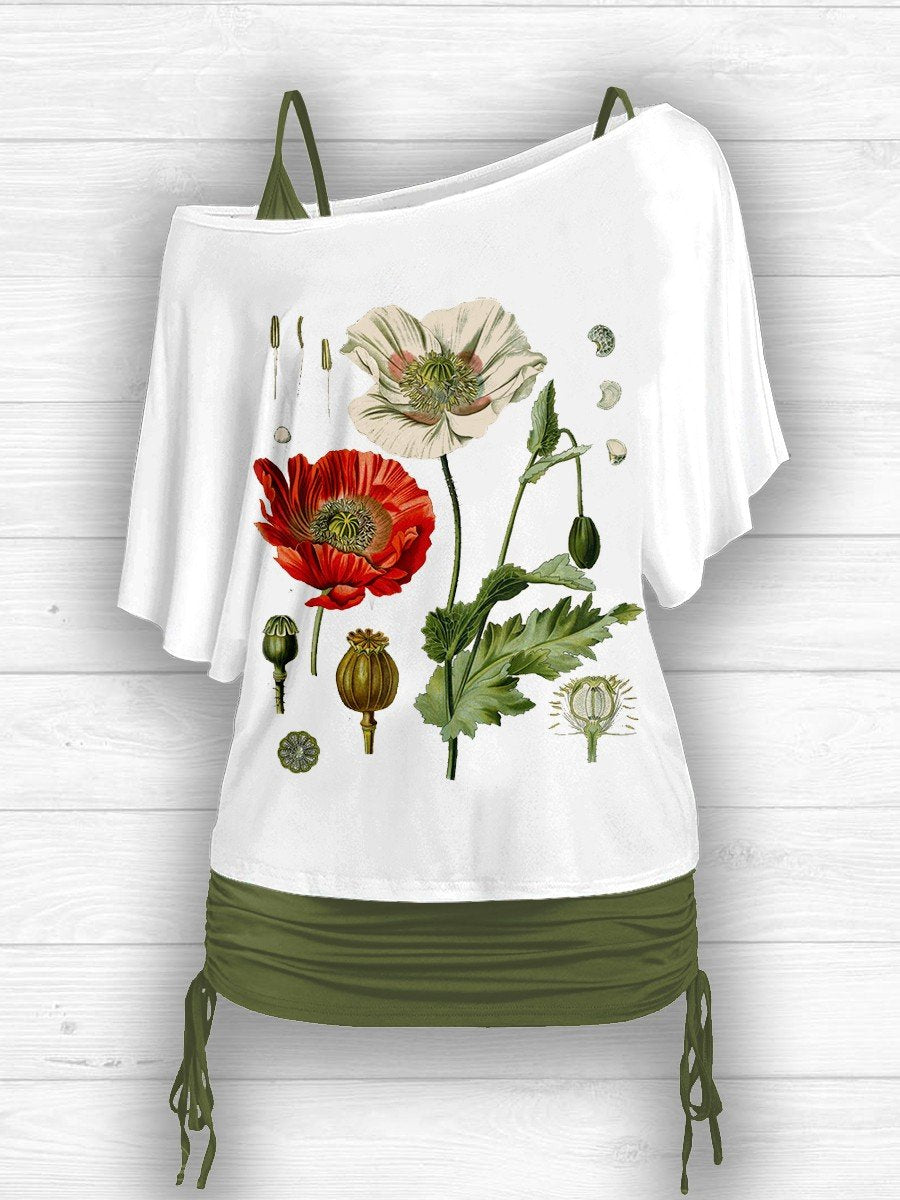 Women's Vintage Poppy Art Design Two Piece Suit Top