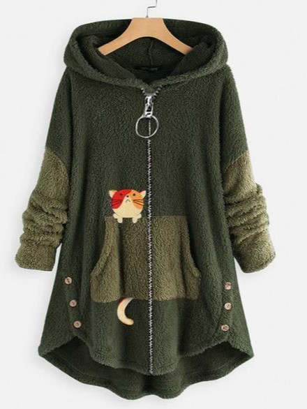 Weit Fluff/Granular-Fleece-Stoff Lässig Teddy Jacke