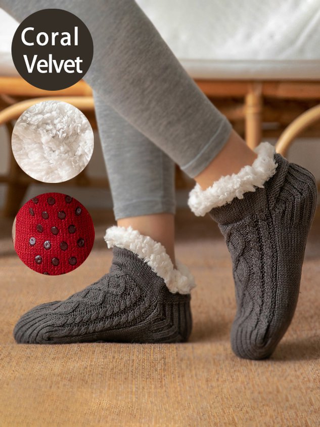 Freizeit Zuhause Korallenfarbe Vlies Twist Muster Socken für den Boden Haufen Socken Herbst Winter Warm Dick