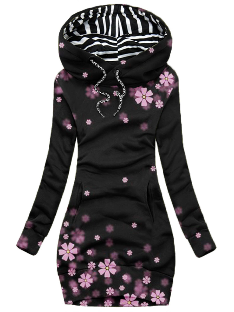 Women's Daily Vintage Flowers Print Hoodie-1020-10