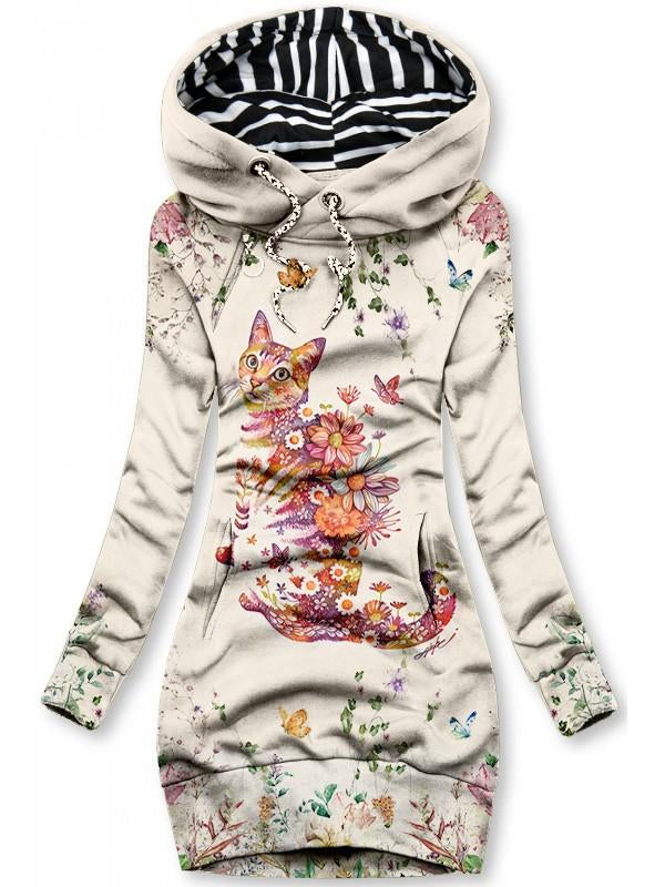 Women's Flower Cat Illustration Art Slim Casual Sweatshirt