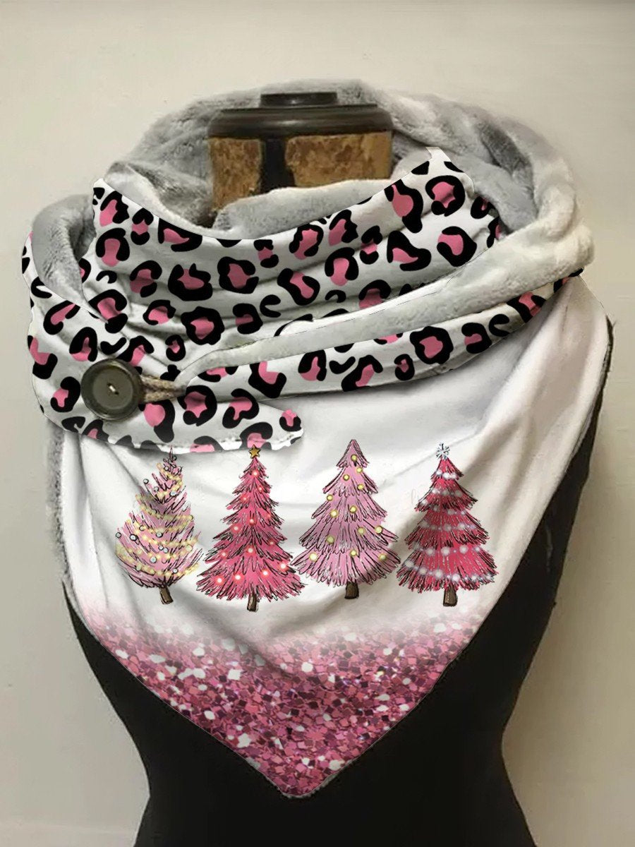 Women's Pink Leopard Christmas Trees Art Shawl Scarf