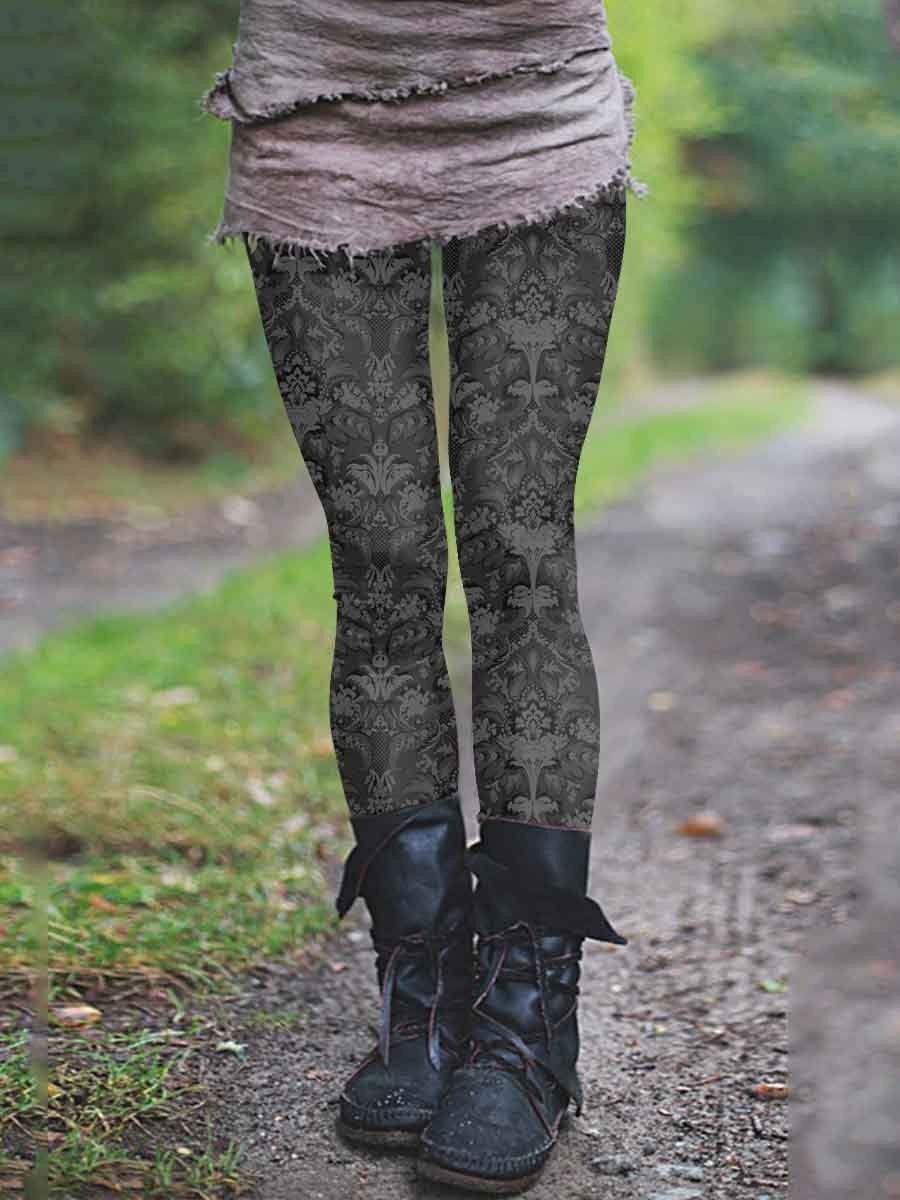 Women's Vintage Floral Pattern Printed Casual Tight Leggings