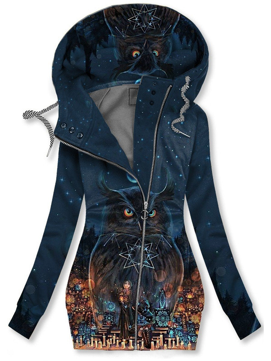 Women's Winter Owl Art Print Casual Track Jacket